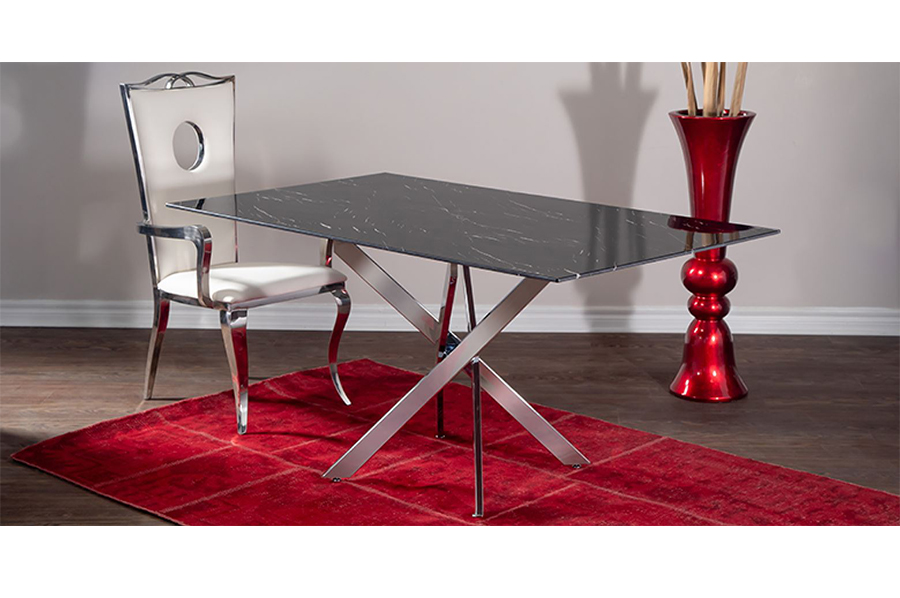 DINING TABLE 12mm Tempered Glass Rose gold Plated Legs 3..