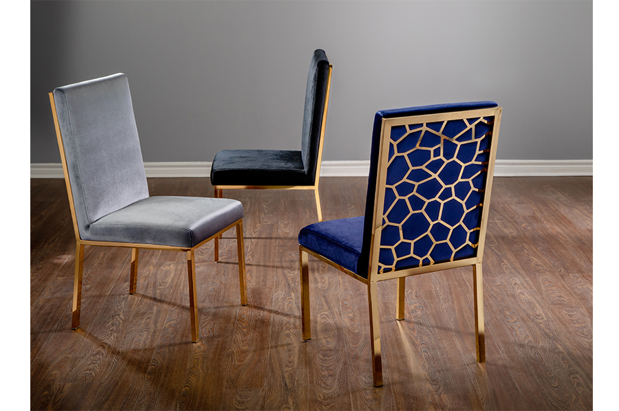 Gold Stainless Steel Legs Laser Cut Details On Back Grey Velv..